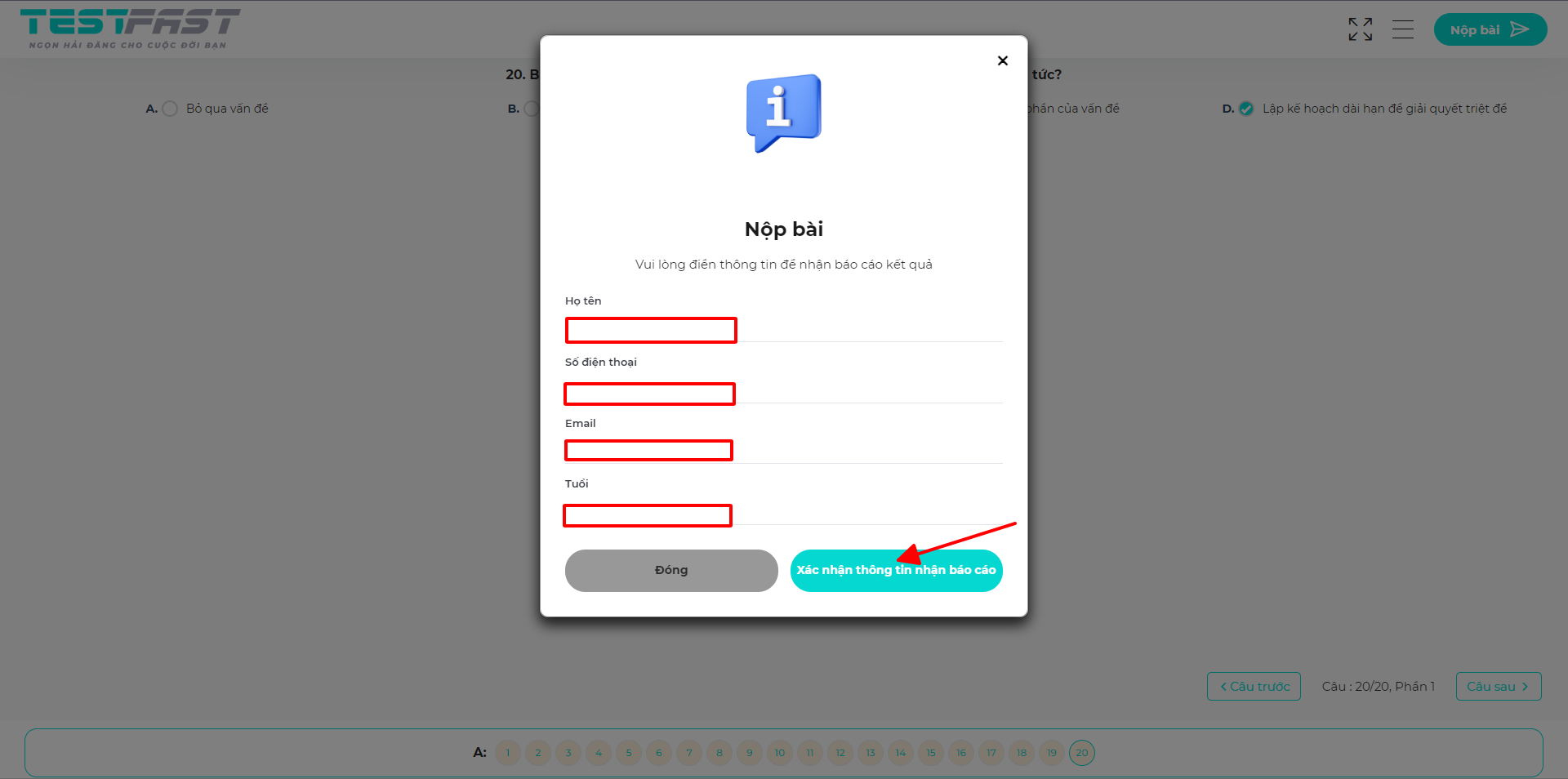 Bước 3: Điền thông tin và Nhận kết quả bạn nhé